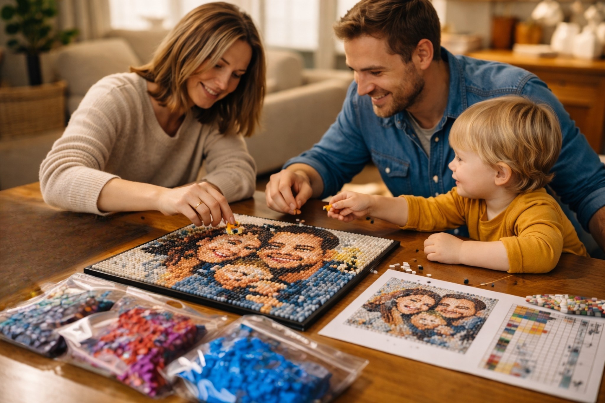 Buy a Memobrick Kit today—even if you don’t have the photo yet. When the moment’s right, send the link, let them pick their favourite image, and we’ll turn it into custom brick art delivered straight to their door.